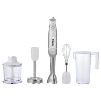 - Компактный блендер с комплектацией 4 в 1: блендер, измельчитель, миксер и насадка для приготовления пюре