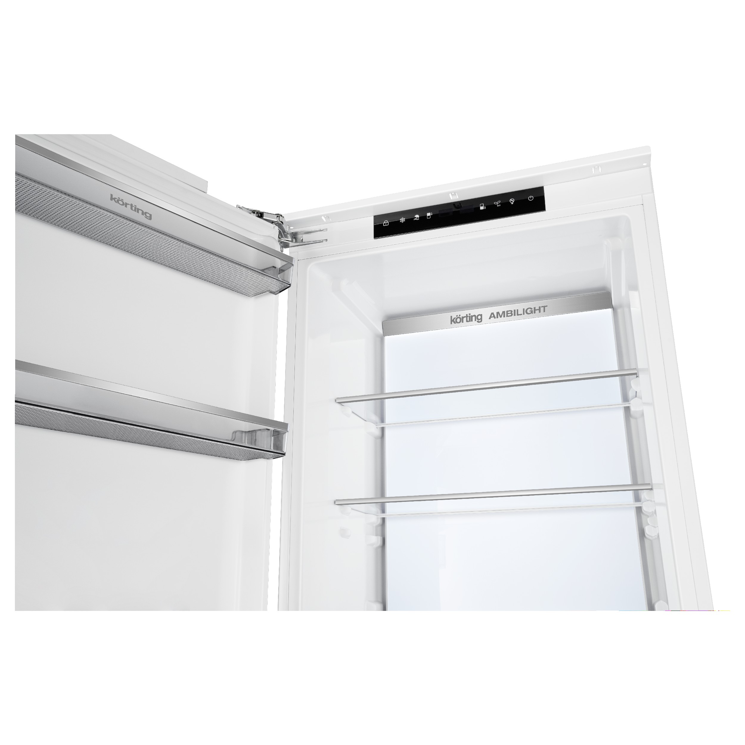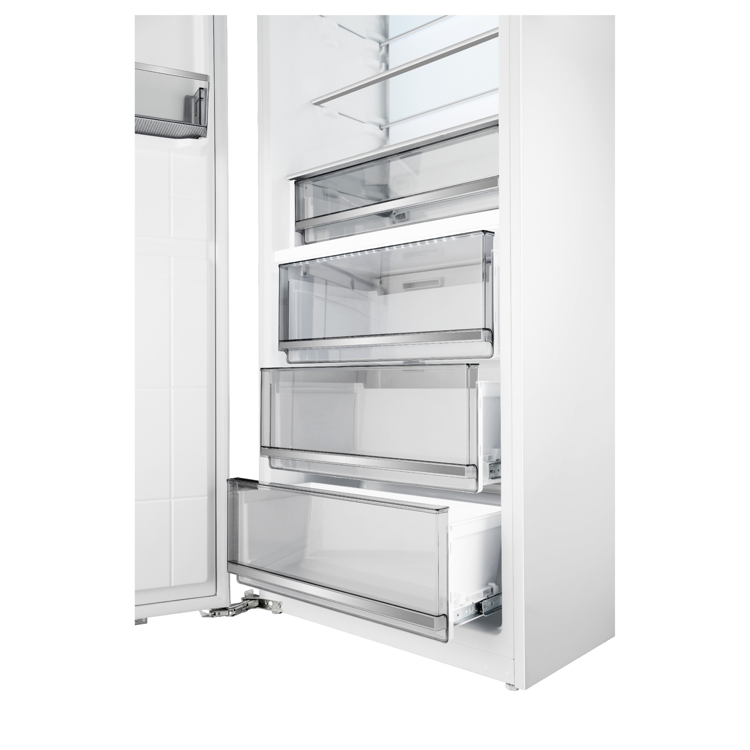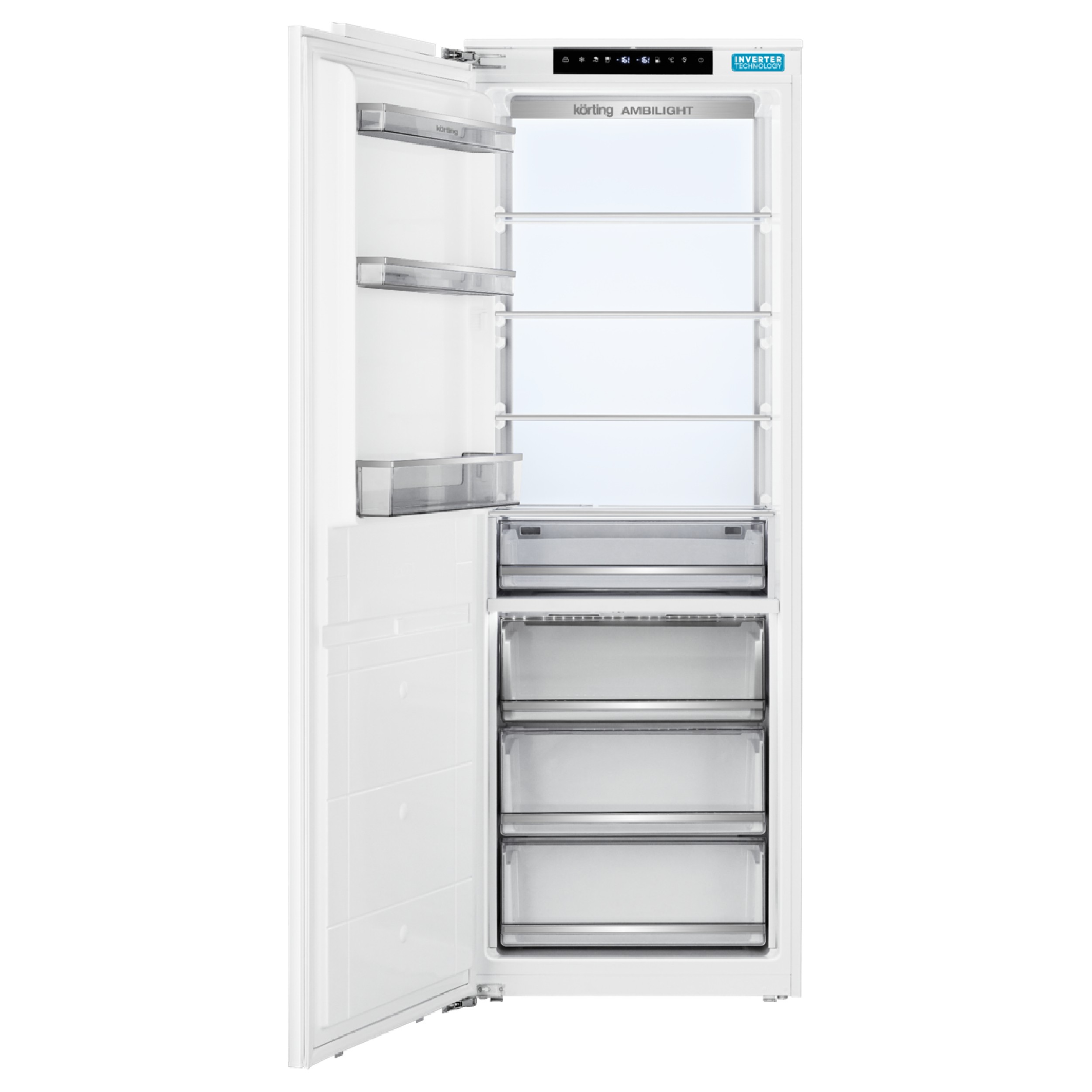 Встроенная система No Frost в морозильном отделении обеспечивает автоматическое предотвращение образования наледи, избавляя пользователя от необходимости регулярной разморозки. Это не только экономит время, но и поддерживает стабильную температуру, сохраняя свежесть продуктов. Электронное управление с цифровым дисплеем и индикаторами делает процесс настройки интуитивно понятным и позволяет контролировать все параметры работы. Яркое внутреннее освещение обеспечивает отличную видимость содержимого, даже при полной загрузке восьми вместительных ящиков. Для удобства предусмотрен специальный лоток для приготовления кубиков льда, что особенно оценят любители охлажденных напитков.